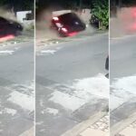 Carro “voa” sobre calçada e atinge muro em Campos Imagens de câmeras de segurança de…