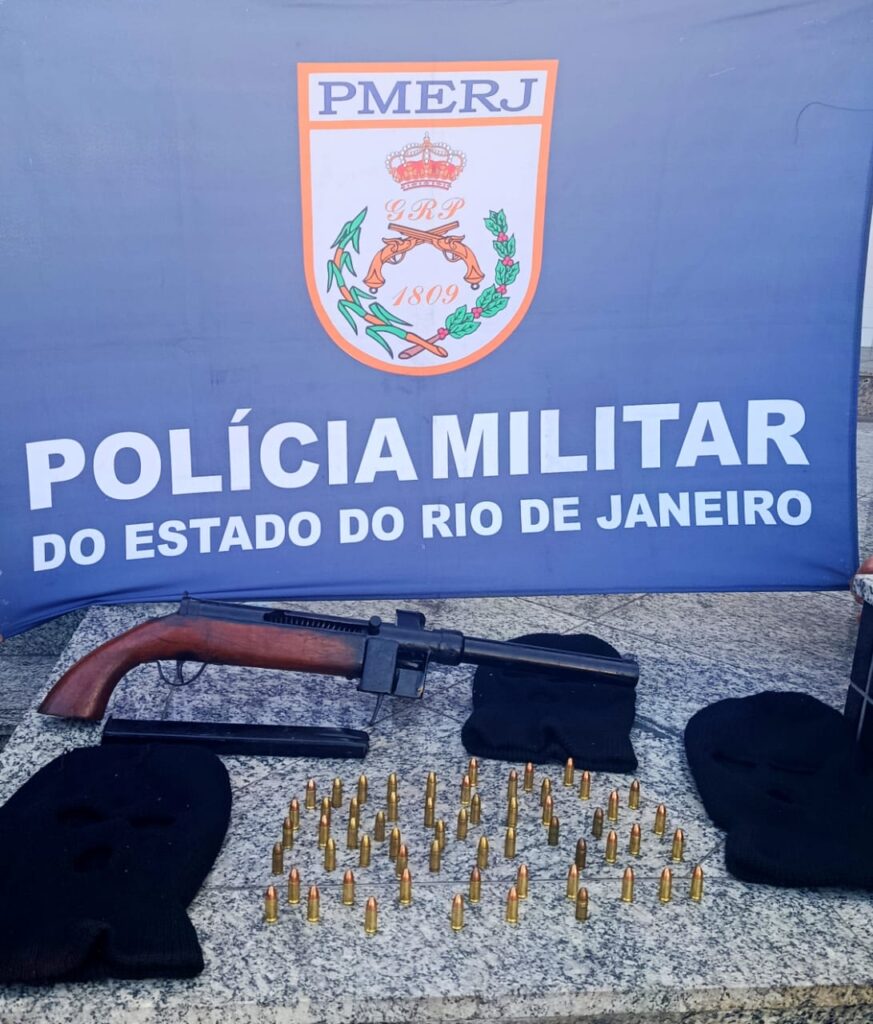Policiais militares apreenderam uma submetralhadora e munições na Rua 3, área conhecida como “Faixa de Gaza”, no bairro Eldorado, após receberem informações de que criminosos estariam planejando um ataque contra uma facção rival.