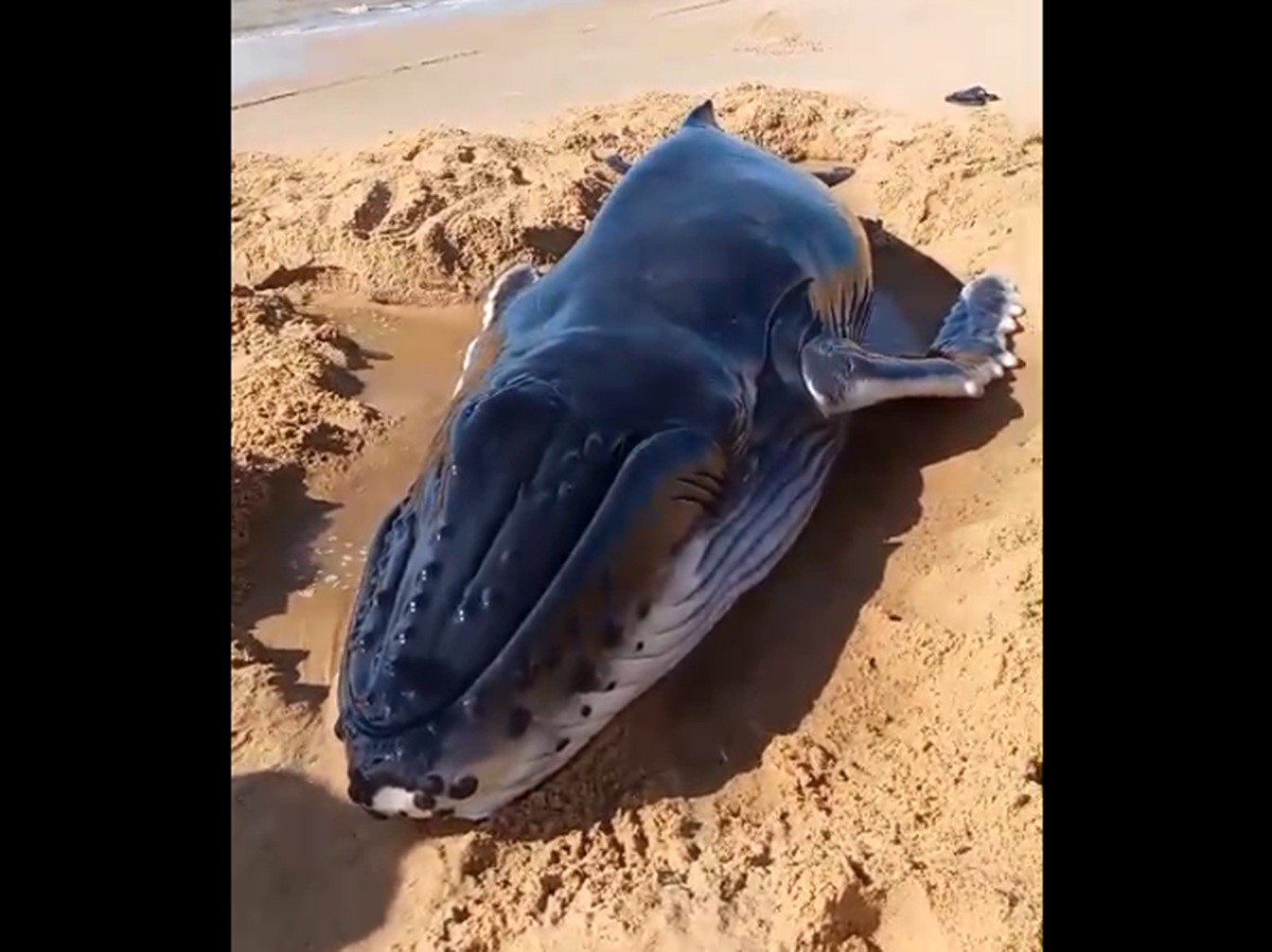 Filhote de baleia encalha e morre na Praia de Grussaí, em São João da Barra; vídeo
