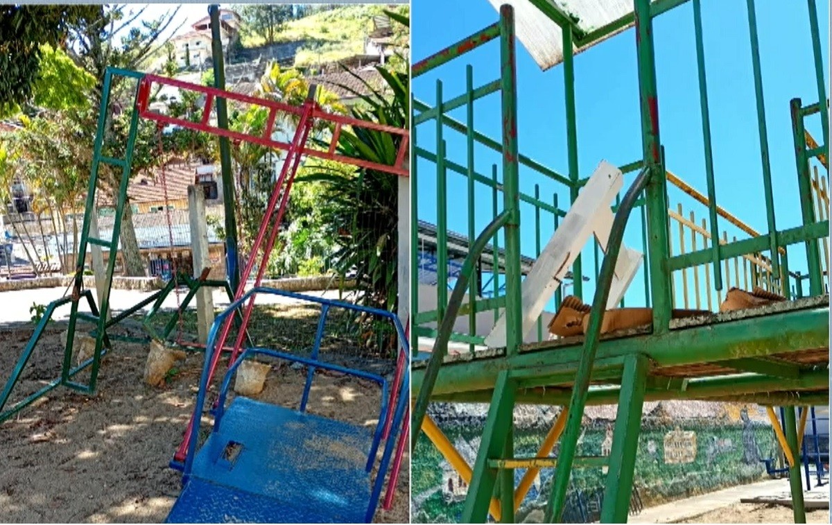 Parquinhos de Nova Friburgo têm brinquedos quebrados e oferecem risco a crianças