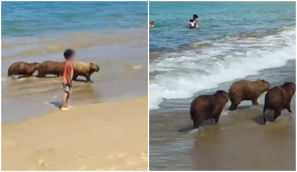 Capivaras surpreendem banhistas na Praia da Ferradura, em Búzios Três capivaras chamaram a atenção de…