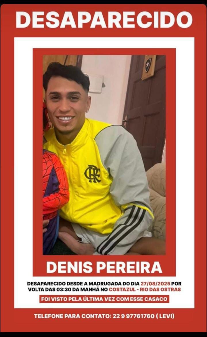 Família busca por cabeleireiro desaparecido em Rio das Ostras Divulgação Familiares e amigos de Denis…