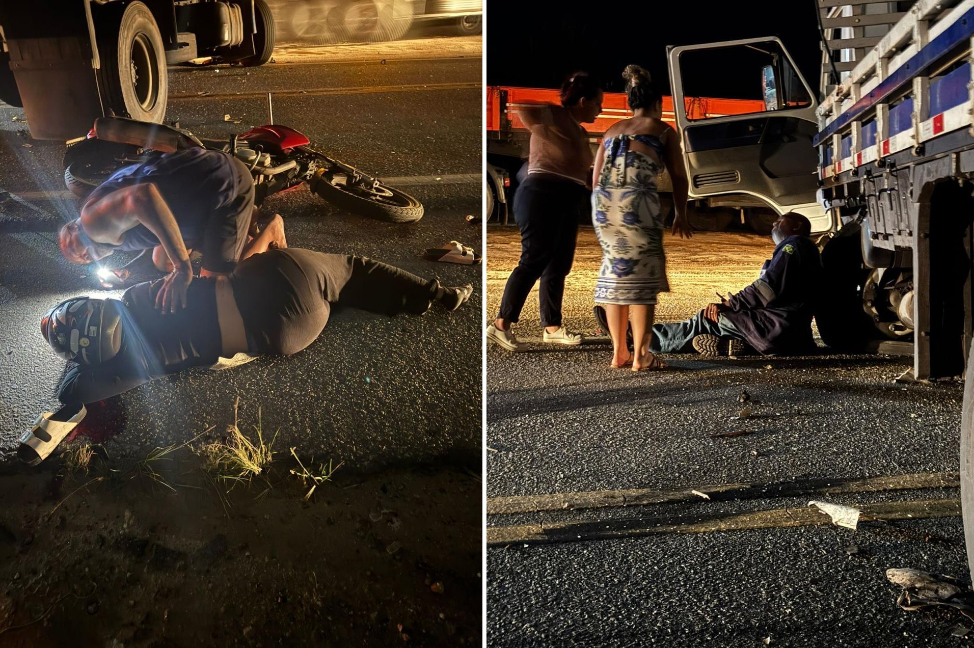 Duas pessoas ficaram feridas em um acidente envolvendo um carro, uma moto e um caminhão…