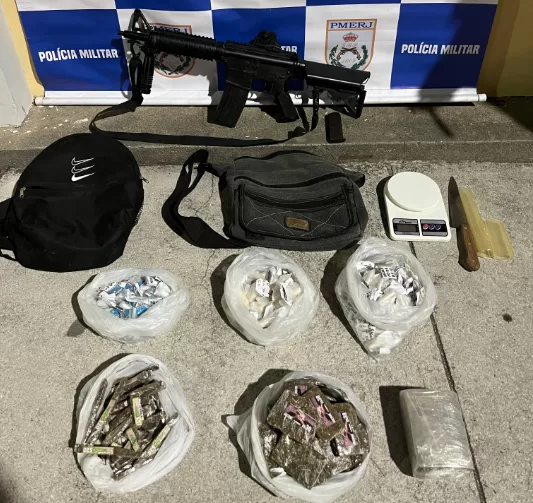 Réplica de fuzil e grande quantidade de drogas são apreendidas em três operações