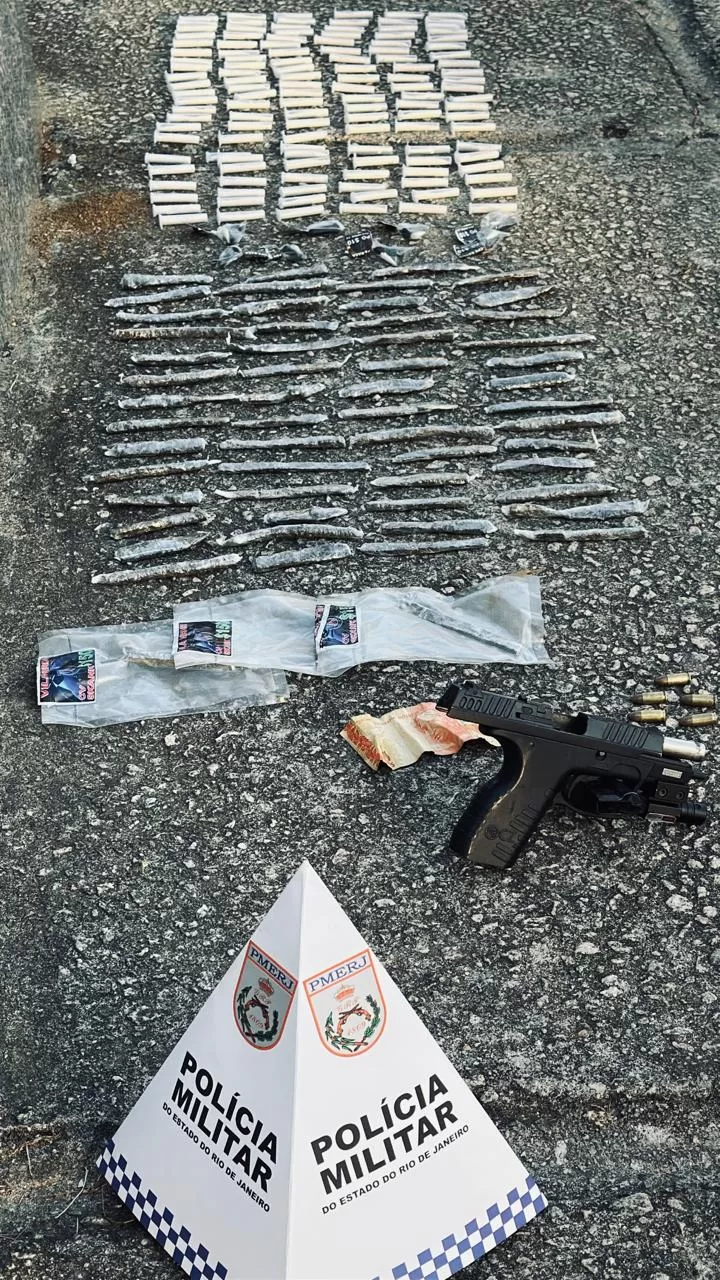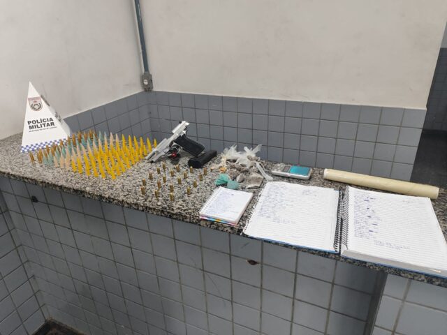 Foram apreendidas 144 cápsulas de cocaína, 58 buchas de maconha, uma pistola CZ100 calibre 9mm,…