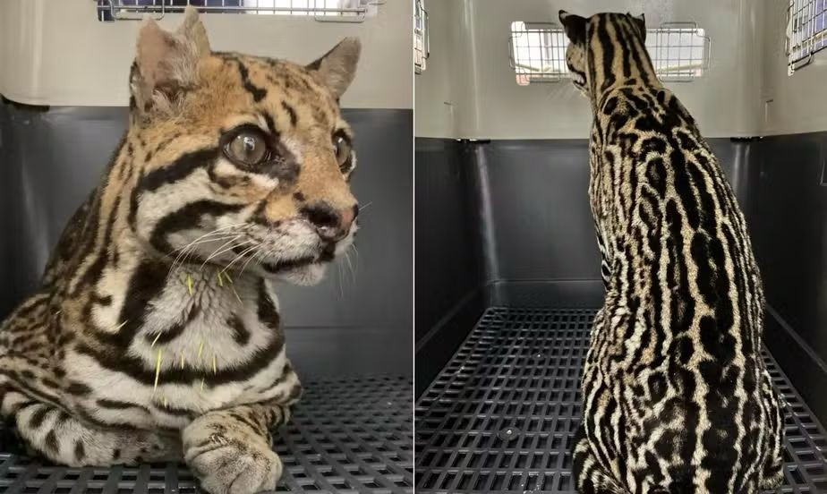 Jaguatirica é resgatada gravemente ferida após invadir galinheiro na Região Serrana do RJ