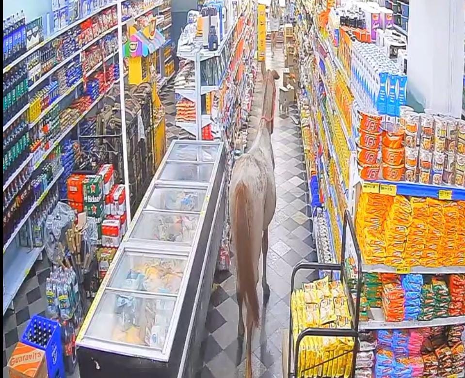 Cavalo invade mercado em Bom Jesus do Itabapoana; cena é registrada por câmeras de segurança