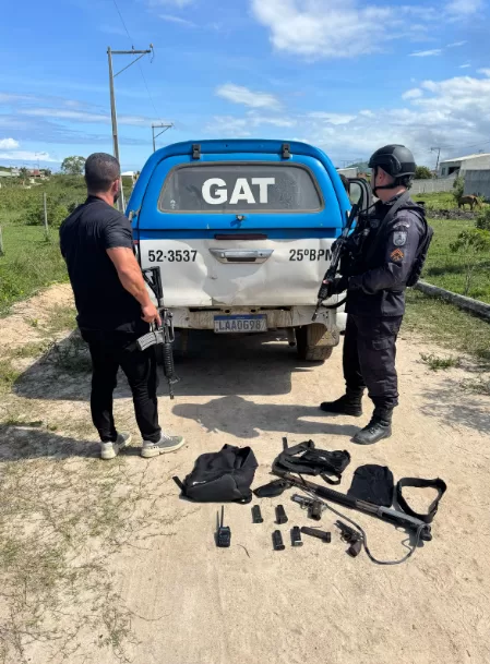PM apreende escopeta, pistola, revólver e outros equipamentos em área de mata