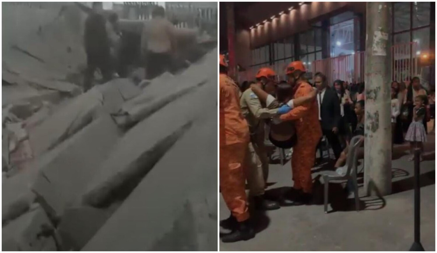 Vídeo mostra resgate de vítimas após desabamento de arquibancada de igreja em Araruama Parte da…