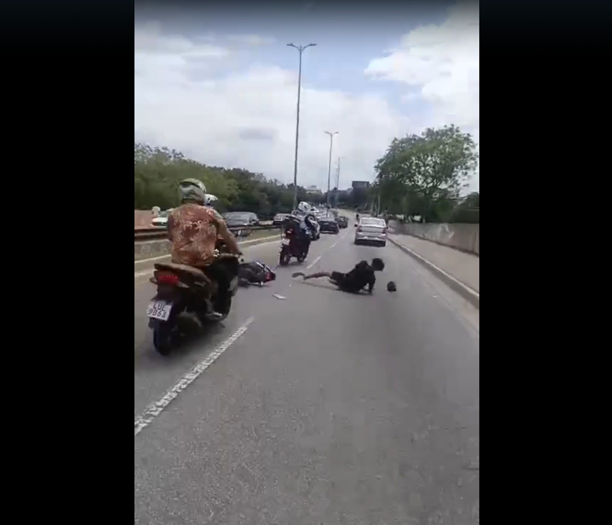 Homem foge em moto sem capacete da polícia e causa acidente na Ponte Estaiada em Rio das Ostras