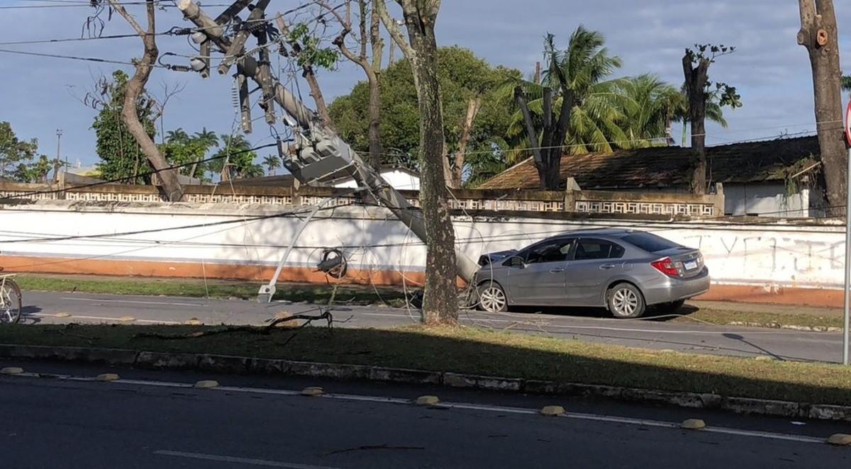 Carro bateu contra um poste e deixou moradores sem luz em Campos. Yuri Ramos/g1 Um…