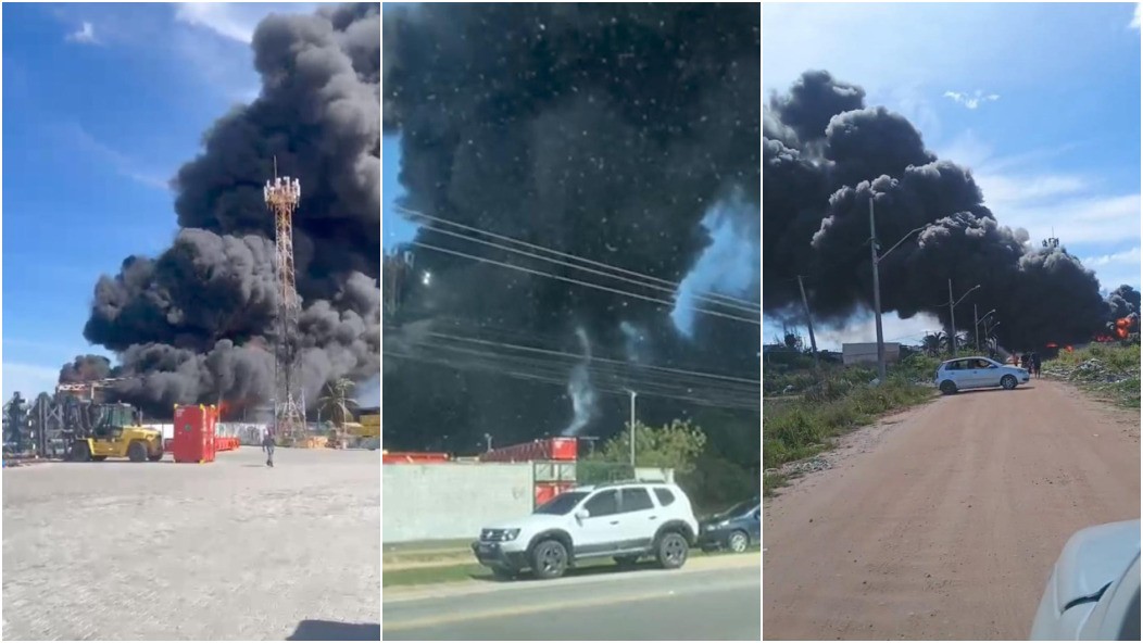Incêndio atinge galpão de pneus e quantidade de fumaça assusta moradores em Macaé, no RJ