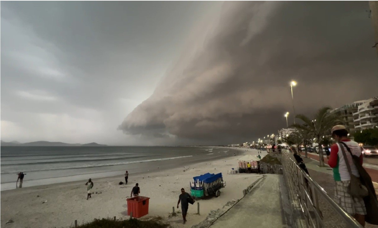 Nuvem-prateleira impressiona moradores durante temporal em Cabo Frio; entenda o fenômeno