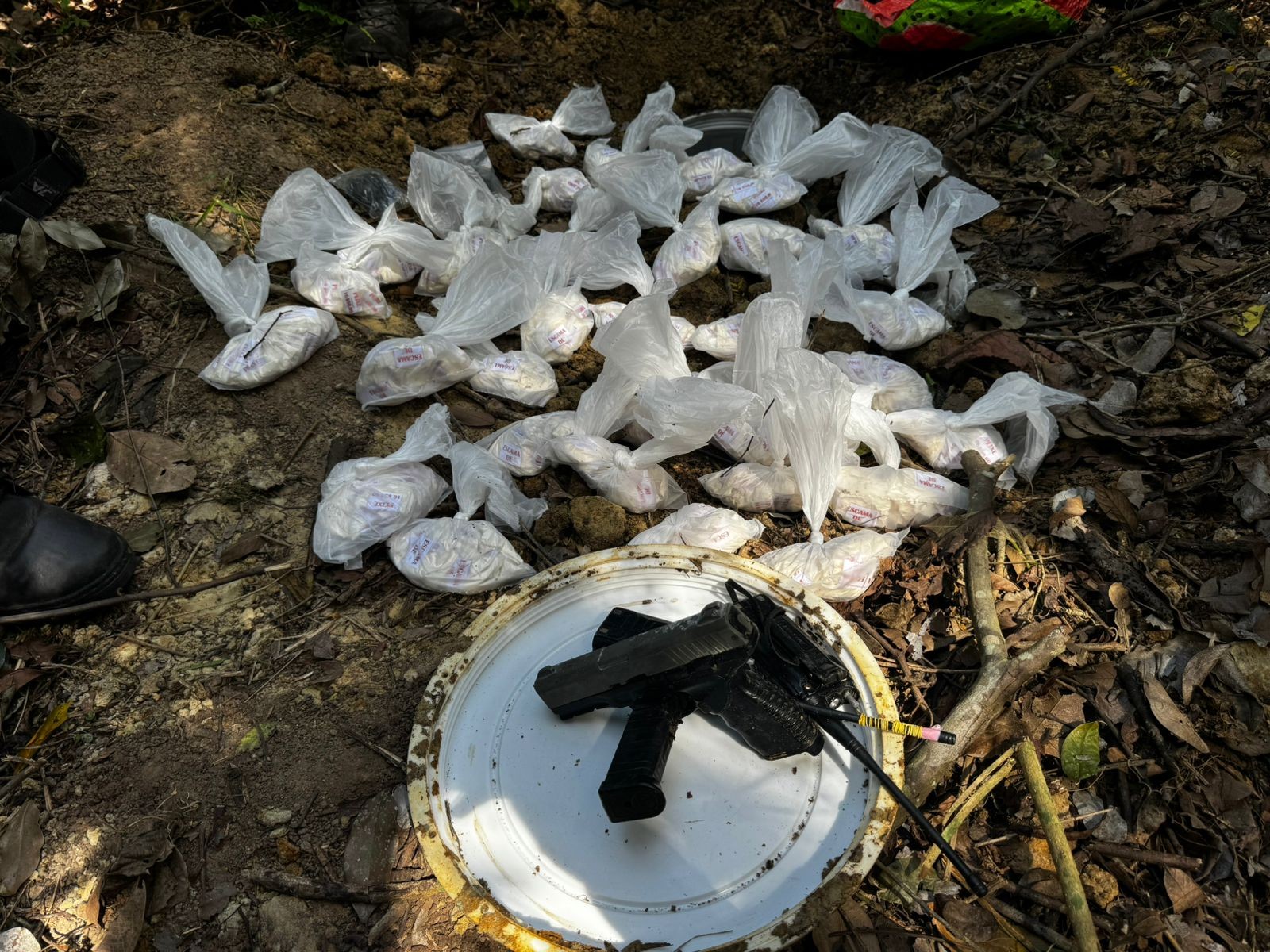 Polícia encontra drogas e arma falsa enterradas em área de mata de Maricá