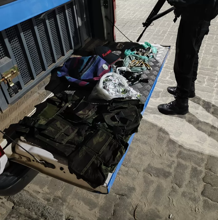 Também foram recolhidos carregadores, munições, rádio comunicador, touca ninja e mochila e outros itens táticos.