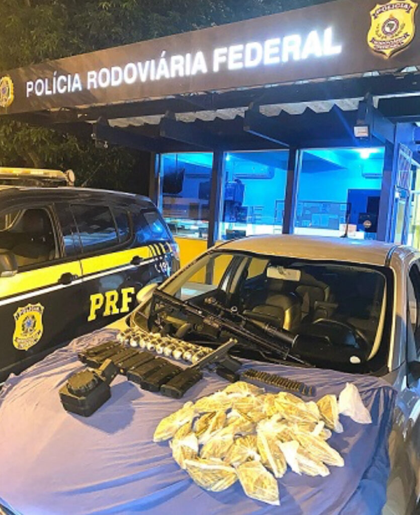 Ainda de acordo com a PRF, após algum tempo de perseguição, o suspeito colidiu contra uma cerca e foi imediatamente alcançado pelos policiais. No interior do veículo, foi encontrada uma bolsa contendo diversos armamentos, incluindo granadas, um fuzil, uma pistola, carregadores e munições.